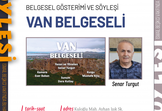 4 Ekim Cumartesi günü, saat 16.00’da teras salonumuzda Van Belgeseli gösterimi ve belgeselin yönetmeni Senar Turgut ile...